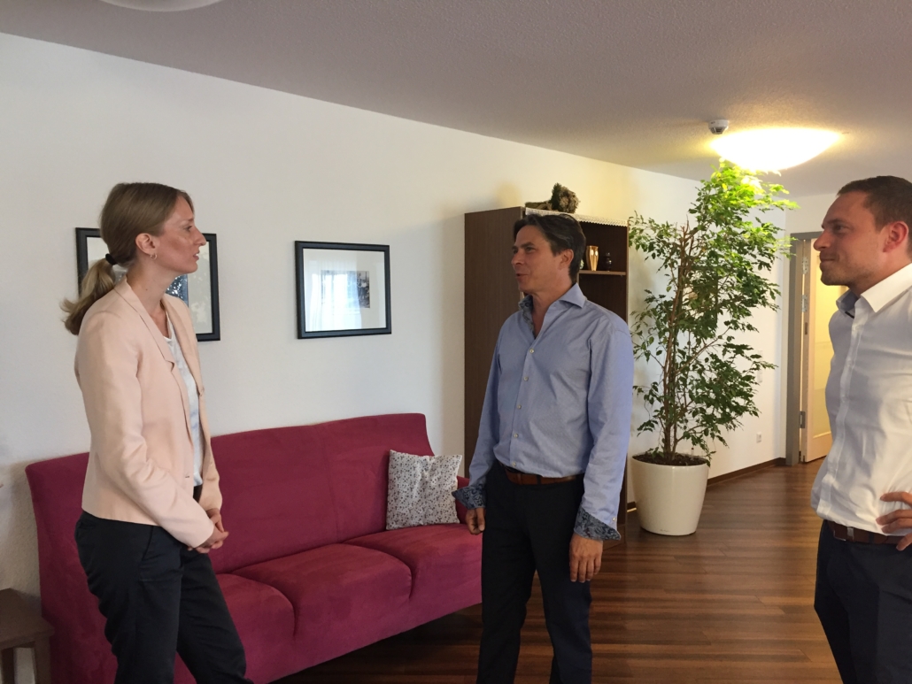 Die Aktion, die vom Bundesverband privater Anbieter sozialer Dienste e.V. ins Leben gerufen und organisiert wurde, brachte im Rahmen eines Gespräches die Vertreter der vielen verschiedenen Arbeitsbereiche des Hauses Schönberg an einen Tisch. Die Teilnehmer reichten von der Geschäftsführung, der Hausleitung, dem Sozialen Dienst bis hin zum Qualitäts-Management. Die Themen die mit den Praktikern vor Ort besprochen wurden, waren die bald kommende generalistische Pflegeausbildung, die Einführung einer Pflegekammer, die immer wichtiger werdende Frage der Finanzierbarkeit von Pflege generell und nicht zuletzt die Wahrnehmung und Wertschätzung der Arbeit in der Öffentlichkeit und Politik.