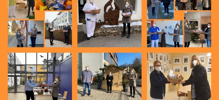 Mit einem weihnachtlichen Präsentkorb bedankt sich Isabell Huber MdL unter Einhaltung der Hygiene- und Abstandsregeln bei den Mitarbeite/-innen der Alten- und Pflegeheime in ihrem Wahlkreis. Auch für die Bewohner/-innen der Heime hatte Huber eine kleine Aufmerksamkeit dabei.