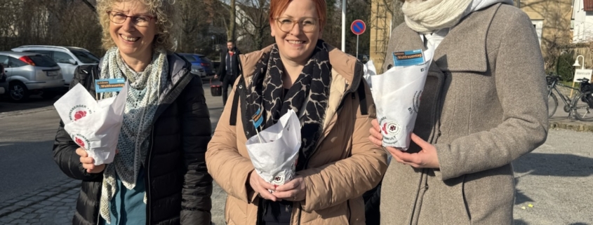 Anlässlich des Weltfrauentags am 8.März hat unsere örtliche Landtagsabgeordnete Isabell Huber gemeinsam mit Martina Susset, Vorsitzende der Frauen-Union Kreisverband Heilbronn, Primeln der Weinsberger Rosenkulturen an alle Frauen auf dem Weinsberger Wochenmarkt verteilt. Ebenso konnte Isabell Huber Bürgermeisterin Birgit Hannemann begrüßen und gemeinsam mit ihr und den Besucherinnen des Wochenmarktes ins Gespräch kommen. Isabell Huber macht deutlich: „Wir haben überall tolle Frauen, sei es in der Wirtschaft, in den Unternehmen, in der Politik und im Ehrenamt. Wir brauchen Frauen dringender denn je, auch in der Politik, auch bei uns in der CDU. Jede Frau ist herzlich willkommen mitzumachen und mitzuarbeiten – für eine bessere und gerechtere Welt. Denn die Herausforderungen sind groß: faire und gleiche Bezahlung, bessere Vereinbarkeit von Familie und Beruf, gleiche Chancen für alle. Daran arbeiten wir – Tag für Tag und Schritt für Schritt.