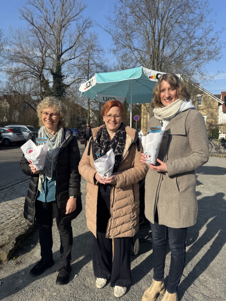 Anlässlich des Weltfrauentags am 8.März hat unsere örtliche Landtagsabgeordnete Isabell Huber gemeinsam mit Martina Susset, Vorsitzende der Frauen-Union Kreisverband Heilbronn, Primeln der Weinsberger Rosenkulturen an alle Frauen auf dem Weinsberger Wochenmarkt verteilt. Ebenso konnte Isabell Huber Bürgermeisterin Birgit Hannemann begrüßen und gemeinsam mit ihr und den Besucherinnen des Wochenmarktes ins Gespräch kommen. Isabell Huber macht deutlich: „Wir haben überall tolle Frauen, sei es in der Wirtschaft, in den Unternehmen, in der Politik und im Ehrenamt. Wir brauchen Frauen dringender denn je, auch in der Politik, auch bei uns in der CDU. Jede Frau ist herzlich willkommen mitzumachen und mitzuarbeiten – für eine bessere und gerechtere Welt. Denn die Herausforderungen sind groß: faire und gleiche Bezahlung, bessere Vereinbarkeit von Familie und Beruf, gleiche Chancen für alle. Daran arbeiten wir – Tag für Tag und Schritt für Schritt.
