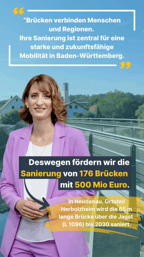 Isabell Huber MdL betont: „Brücken verbinden Menschen, Regionen und Wirtschaftsräume. Deshalb ist es entscheidend, dass wir ihre Sanierung und Erneuerung konsequent mit einer Priorisierung vorantreiben – für eine starke und zukunftsfähige Mobilität in Baden-Württemberg.“