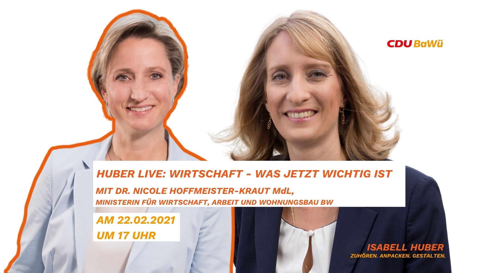 Wirtschaftsministerin Dr. Nicole Hoffmeister-Kraut MdL zu Gast bei Isabell Huber MdL Huber live: Wirtschaft - Was jetzt wichtig ist! am 22. Februar um 17 Uhr. Die Corona-Pandemie stellt unsere Wirtschaft vor enorme Herausforderungen. Während einige wenige Betriebe von der Krise profitieren und sogar neue Wirtschaftszweige entstehen, stehen viele Unternehmen an der Existenzgrenze. Die Politik ist hier geforderter denn […]