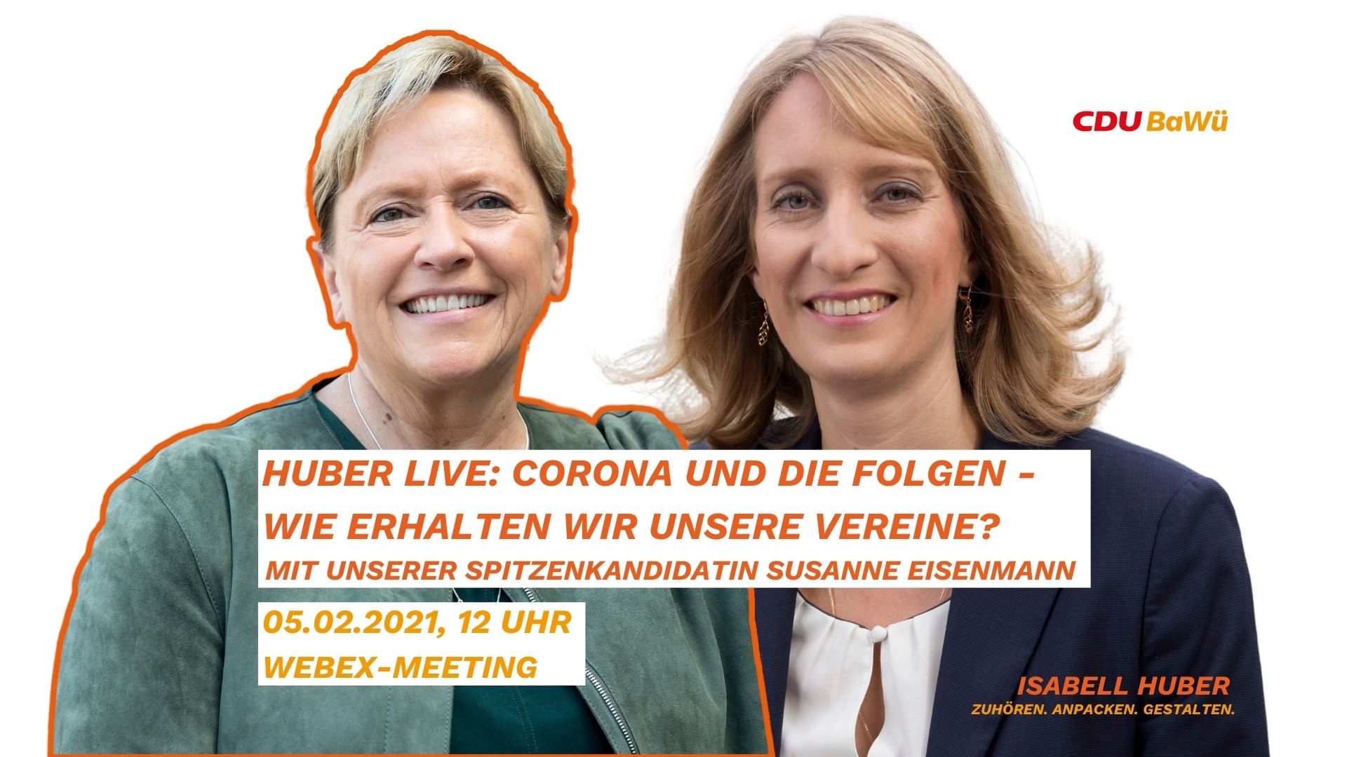 Anmeldung unter info@isabell-huber.de oder alexander.throm.wk@bundestag.de Alexander Throm MdB und ich laden Sie herzlich zu einem Austausch per Videokonferenz ein. Wir wollen mit Ihnen - über aktuelle Themen, Ihre Anliegen und Wünsche an die Politik sprechen, ortsbezogen und direkt: Am 10. Februar 2021, 19:30 Uhr: Für Neuenstadt, Langenbrettach und Hardthausen Bitte melden Sie sich vorab an. Nutzen Sie dafür den untenstehenden Button. Wir senden Ihnen dann die Zugangsdaten zu. Videokonferenzen für weitere Kommunen aus dem Wahlkreis […]